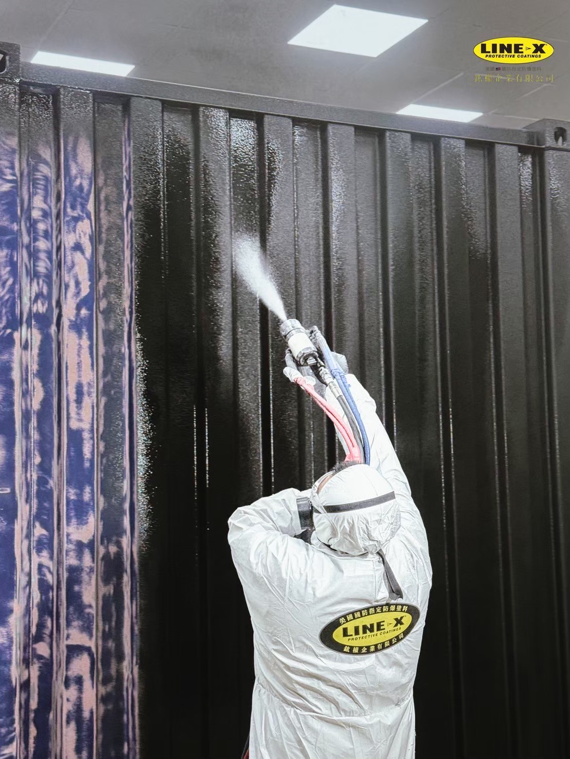 透過LINE-X防護塗層技術,將傳統結構升級為具備防爆與環境防護能力之移動式庇護系統。
