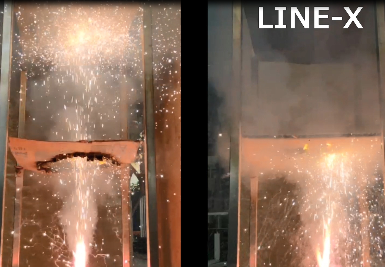 LINE-X TAIWAN 同時撞擊+耐燃測試 LINE-XS-350+XS-252 Impact + flame resistance test at the same time