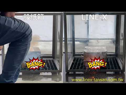 LINE-X TAIWAN LINE-XS-350+XS-252 Impact + flame resistance test at the same time